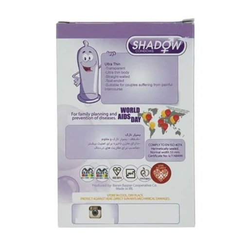 مشخصات کاندوم بسیار نازک شادو SHADOW ULTRA THIN بسته 12 عددی