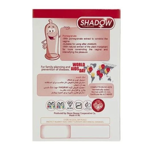 مشخصات کاندوم تنگ کننده انار شادو SHADOW POMEGRANATE بسته 12 عددی