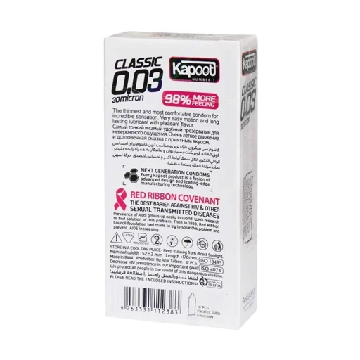 ویژگیهای کاندوم فوق العاده نازک 0.03 کاپوت KAPOOT Classic 30 Micron بسته 10 عددی