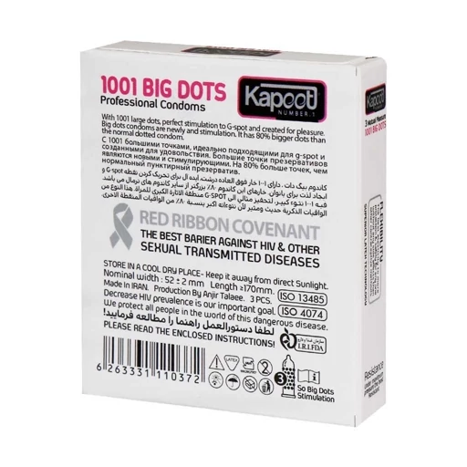 ویژگیهای کاندوم خاردار درشت بیگ داتس کاپوت KAPOOT Big Dots 1001 بسته 10 عددی