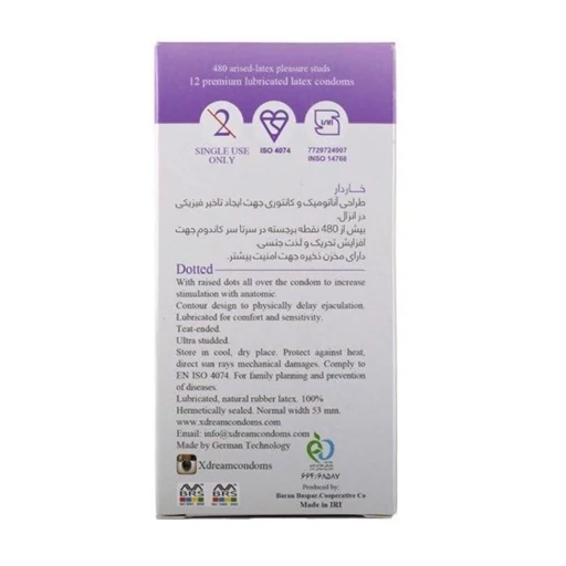 ویزگی های کاندوم خاردار و تاخیری داتد ایکس دریم XDream Dotted بسته 12 عددی